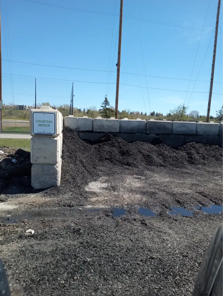Dark decorative mulch that enhances plant beds and controls weeds.